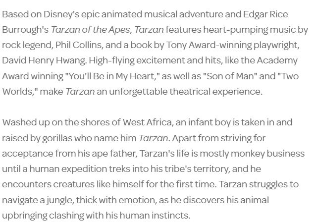 Tarzan the musical (4/18 – 5/5)