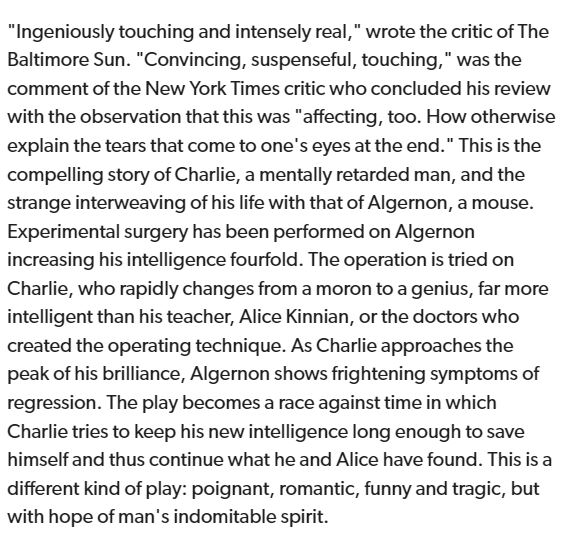 Flowers for Algernon (2/8 – 2/25)