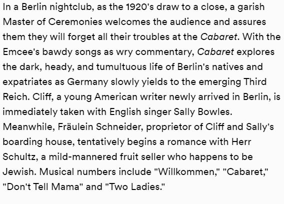 AUDITIONS for BAAY's State Street Theatre Company production of "Cabaret" are this weekend! This musical theatre program is open to students ages 15-17 (and 18 if a member of 2023 graduating class).