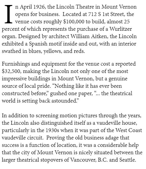 Performs in November at the historic Lincoln Theater in Mount Vernon, WA