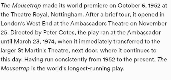 Agatha Christie's Mousetrap auditions June 24, 25